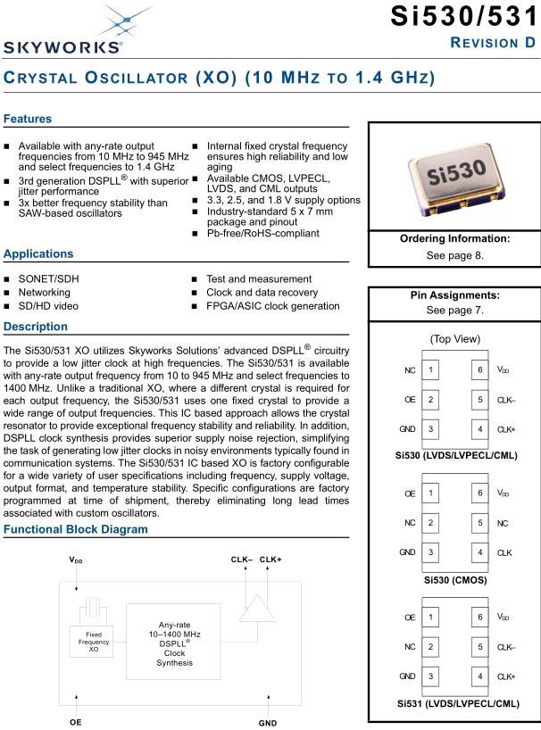 | 530BC148M500DG | Silicon Labs | Si530 | 148.5MHz | 3.3V | ±7ppm |